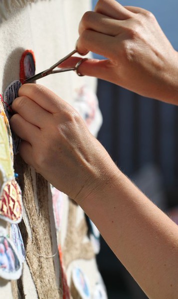 Beim Gestalten sind es die Hände, die „werkeln“, ohne vorher wissen zu müssen, wie genau diese „fühlbar tröstenden Erinnerungen“ entstehen, ohne einen Plan zu haben, wohin die Reise geht…