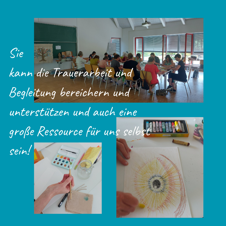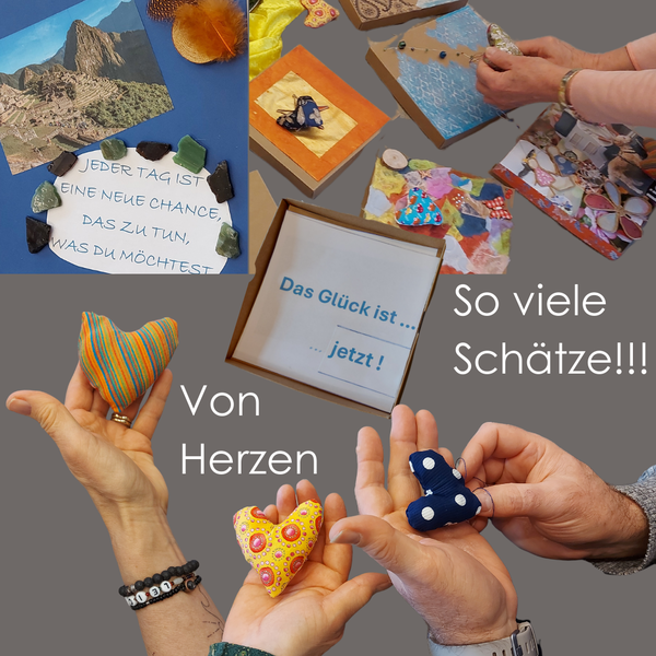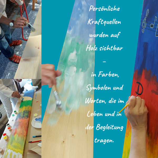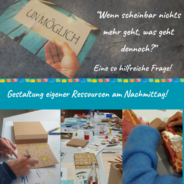 Im Alltag bleibt oft wenig zeit, gerade auch für "uns als Begleitende", sich aus den eigenen Ressourcen zu nähren ..., sich z.B. zu fragen: Was trägt mich durch schwere Zeiten, was gibt mir Trost und Halt ... Es war auch deshalb so schön zu erleben, wie sich die Teilnehmer*innen, mit Hingabe, Herz, Leib & Seele intensiv mit den eigenen Ressourcen befasst haben.