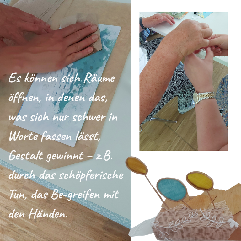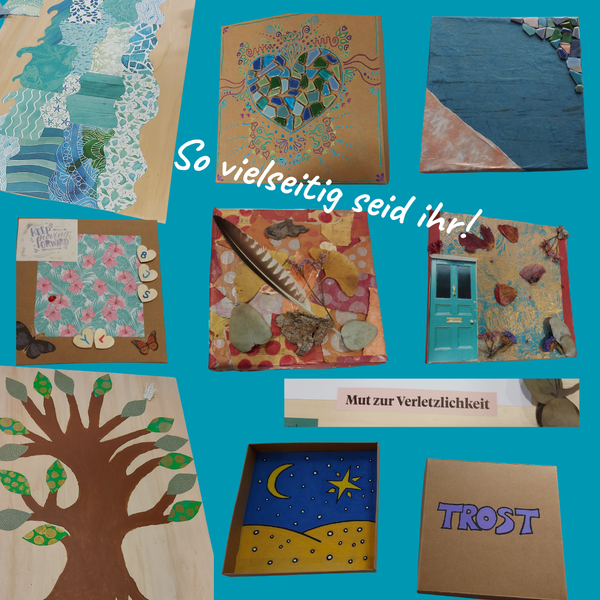 Kreativ sein wird von den Teilnehmer*innen tatsächlich als Kraftquelle erfahren, (neu) - entdeckt und mehrere neue Ideen, für den persönlichen- und beruflichen Kontext entfalten sich während des Seminars. Es fand gegenseitige Inspiration statt, Hände werkelten und Augen leuchteten. DANKE, dass ihr euch so eingelassen habt!